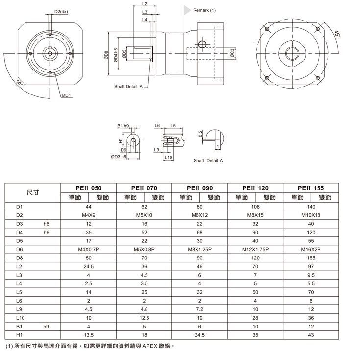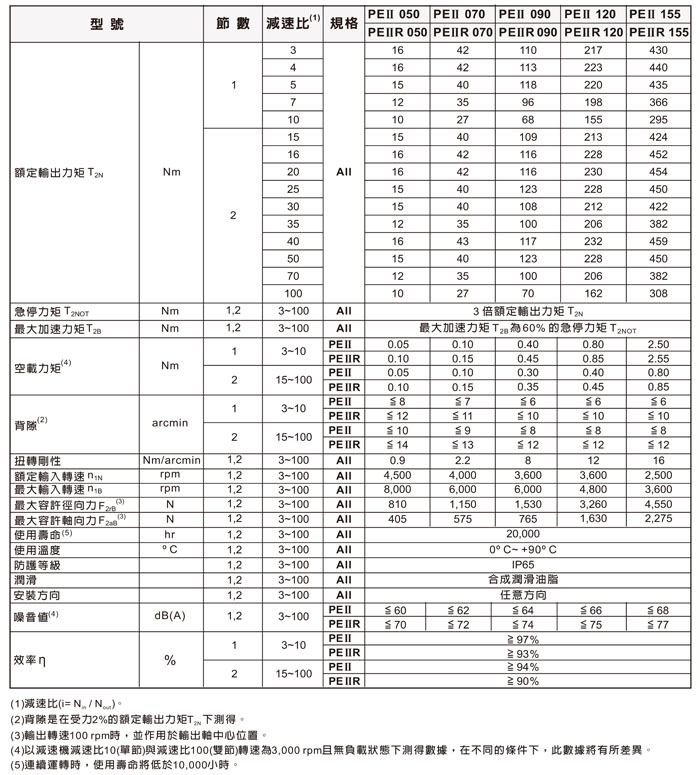 APEX全新的PⅡ/PⅡR系列為高精度的經濟型伺服馬達減速機,擁有極佳的效能與品質。APEX的創新設計,提供給您最小的尺寸,最輕的重量及最佳的運轉效能。