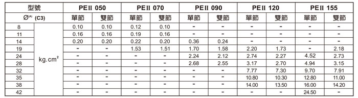 雙節 : 15 / 16 / 20 / 25 / 30 / 35 / 40 / 50 / 70 / 100