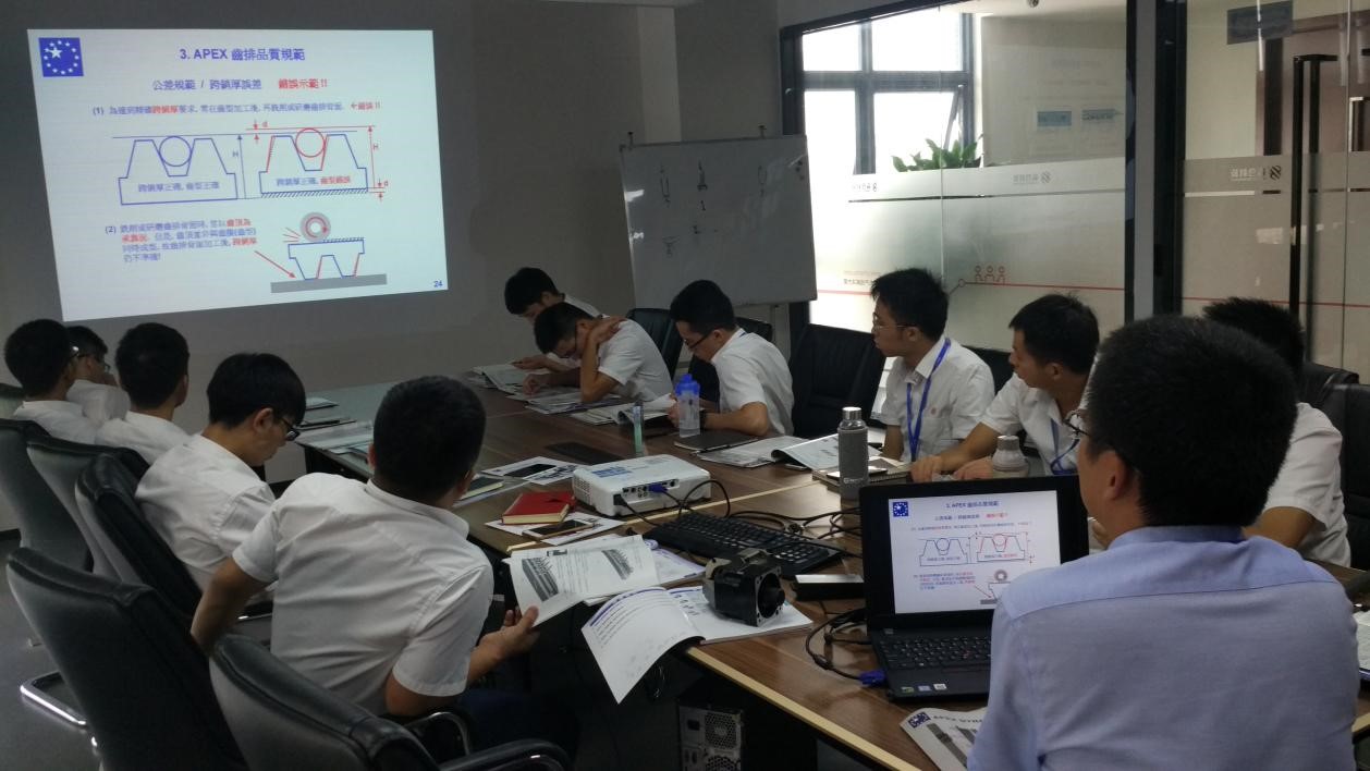 我司為贏合科技進行專項技術培訓8月15日,受贏合科技的邀請,我司技術人員為該公司的20多名技術工程師進行了APEX減速機與齒輪齒條培訓。我司著重介紹了A